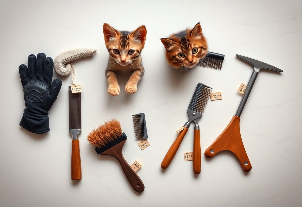 Choose tools by testing on a small patch so you can gauge your cat’s response: for heavy undercoats and breeds like Maine Coon, use an undercoat rake or de-shedding tool to remove loose fur; for short, dense coats use rubber brushes to lift hair. For thin or hairless skin, use soft mitts and slicker brushes gently to avoid skin abrasions. Treat stubborn mats with a comb and careful trimming only when necessary to prevent injury.