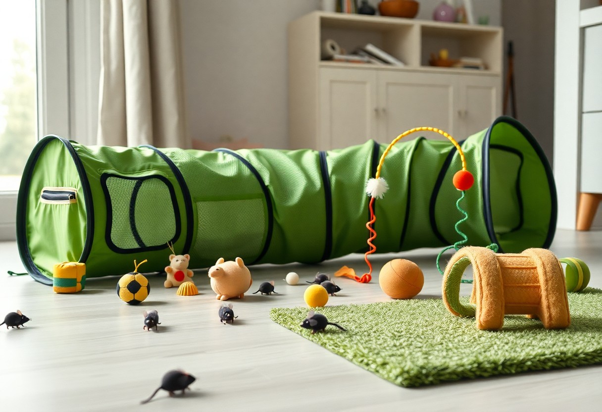 Tunnels satisfy your cat’s curiosity and hunting instincts by creating hidden pathways and ambush points; you can hide toys or dangle feathers at entrances to prompt investigation. Opt for tunnels with multiple openings to keep routes unpredictable and engaging, and check seams regularly to avoid loose fabric or sharp edges that pose risks.