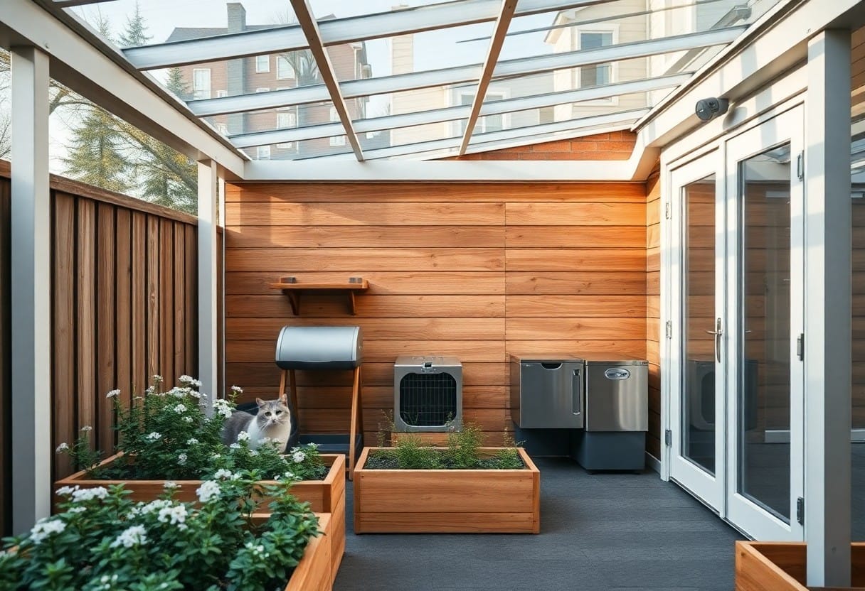 Connect the area to a mudroom or dedicated vestibule with a cat door to create a secure transition and consider a short double-door entry (airlock) to greatly lower escape risk. Install self-closing gates, secure latches, and use hardware cloth near openings; avoid siting the entrance toward unfenced neighbor yards or busy alleys that attract roaming dogs.
