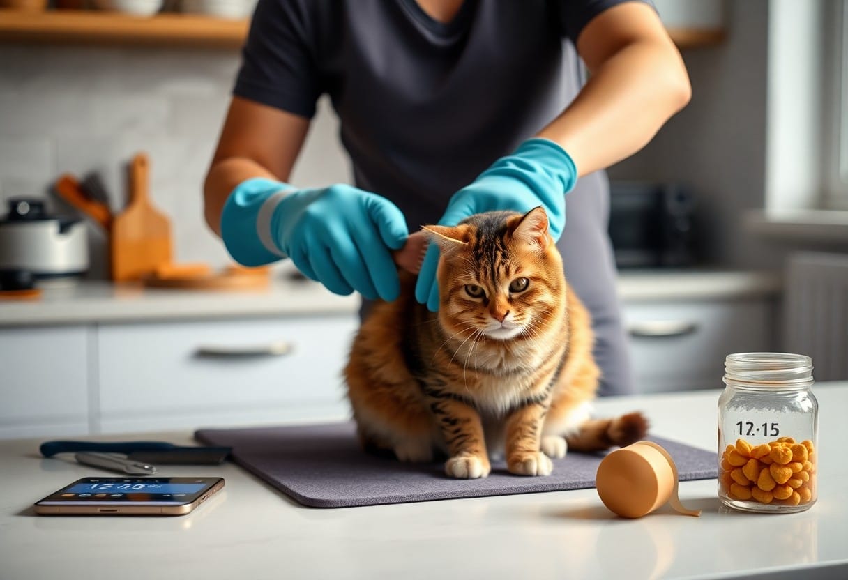 For example, brush for 5 minutes after dinner every day, check ears and teeth on Wednesdays, and trim nails every 2-3 weeks on a set day; if your cat resists, split tasks into two 3-5 minute sessions. Use calm tones and gentle restraint, offer treats after each step, and never force a struggling cat to avoid scratches or bites; steady, positive repetition creates lasting habits.