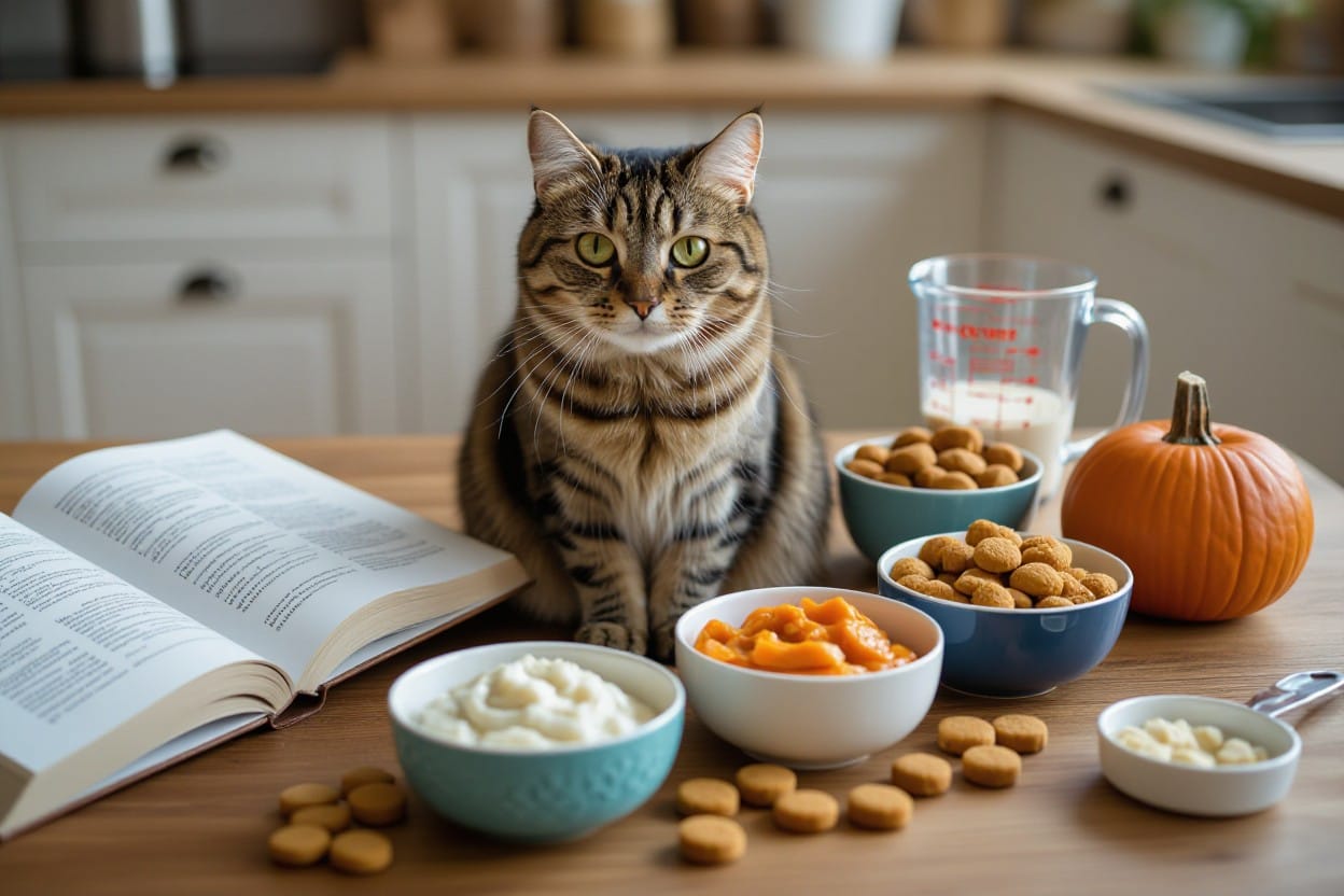 Focus on high-quality animal protein like cooked chicken, turkey, or canned salmon (water-packed) as the base; add moisture with low-sodium bone or fish broth and 1–2 tablespoons of canned pumpkin per cup of mix for fiber; use unflavored gelatin (about 1 tsp per cup of warm broth) or canned tuna in water as binders for soft cat treats for senior cats; finish with a drop of fish oil for omega-3s and a pinch of powdered taurine if your cat’s diet lacks it for optimal elderly cat nutrition treats.
