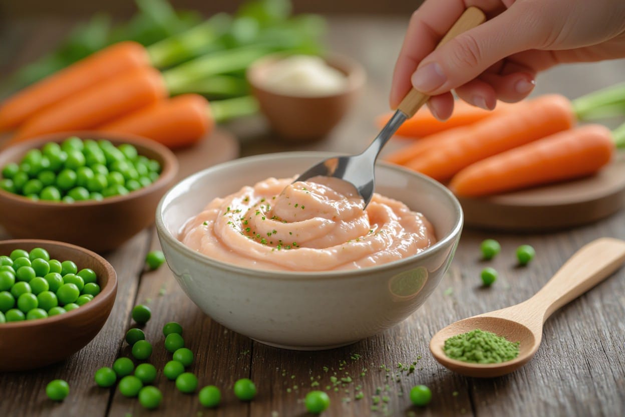 Prefer poaching or steaming over long dry baking: poach small cubes 7–10 minutes or steam 5–8 minutes to retain moisture and aroma, then mash or blend into patties. For added flavor and lipid balance, stir in 1 tsp fish oil per 100 g of mix after cooling.